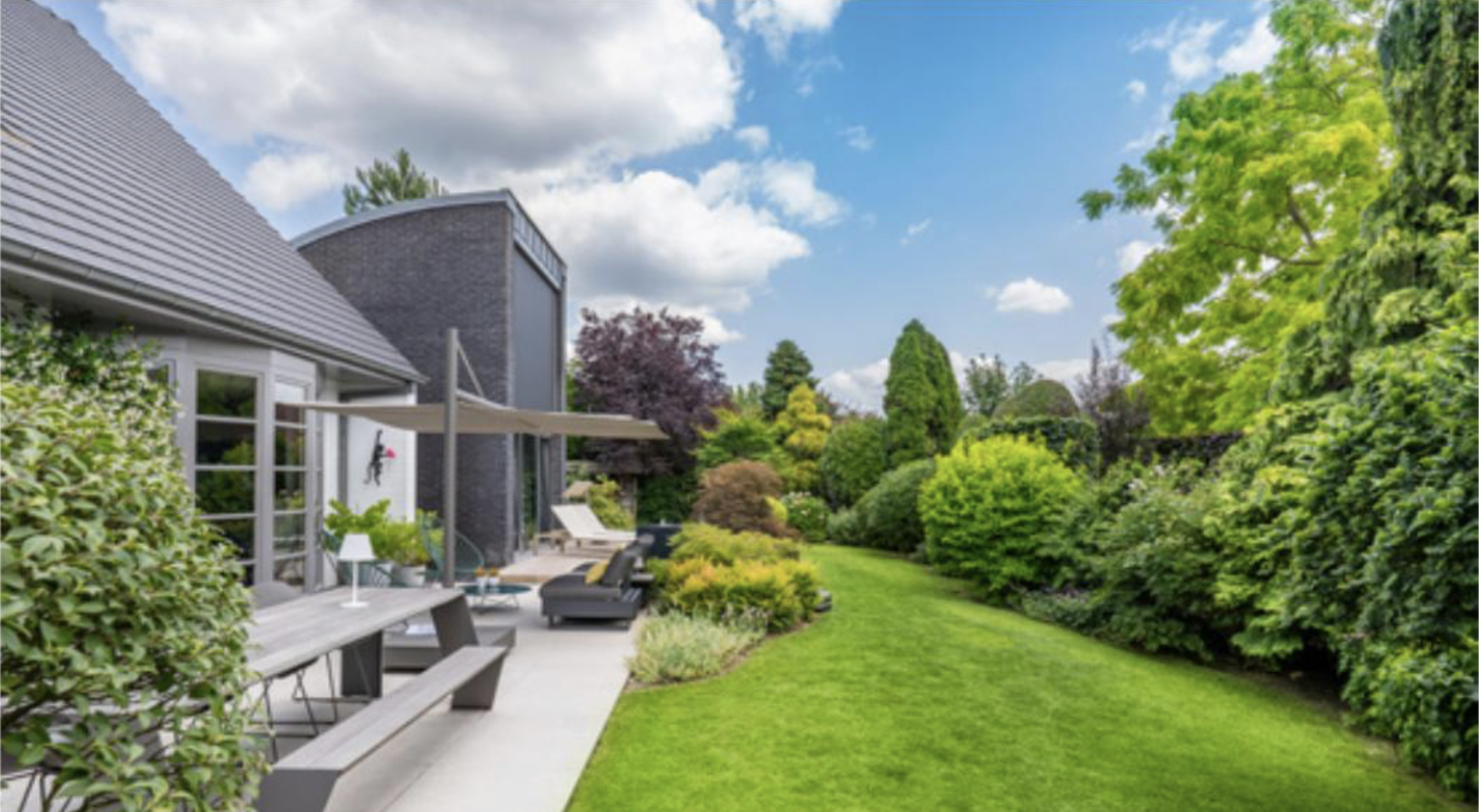 Le projet primé, réalisé dans l'ouest du Hainaut, est un véritable havre de paix. Conçu autour d'un étang de baignade naturel, il marie modernité et charme du passé grâce à la présence de vieux murs entourant la propriété. La conception s'articule autour de la perspective, jouant subtilement sur les plans avant, moyen et arrière pour donner à ce petit écrin une impression de grandeur et d'espace. Grâce aux grandes baies vitrées, le jardin se vit également depuis l'intérieur.