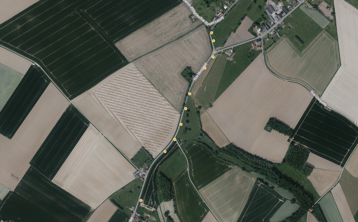 Points lumineux de la rue Monplaisir à Ellignies-Sainte-Anne répertoriés comme 'Eclairage public communal inutilement gênant pour la biodiversité'