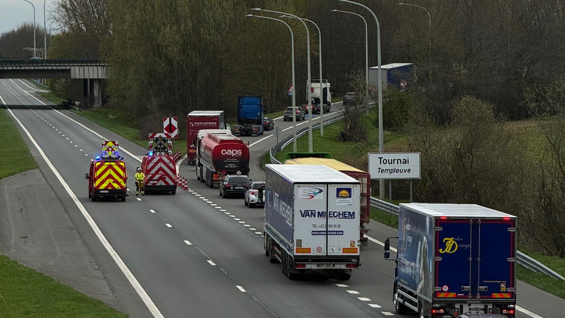 Les automobilistes venant de Mouscron ont été invités à prendre la sortie Templeuve et la sortie Lamain-Hertain pour ensuite faire demi-tour en direction de Bruxelles et Mons.